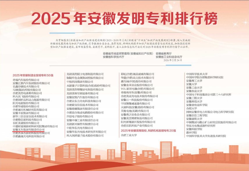 近日,安徽省市場(chǎng)監(jiān)督管理局(安徽省知識(shí)產(chǎn)權(quán)局)、安徽省教育廳、安徽省科學(xué)技術(shù)廳、安徽省工業(yè)和信息化廳聯(lián)合發(fā)布“2025年安徽發(fā)明專利排行榜”,安徽叉車集團(tuán)憑借卓越的創(chuàng)新能力與知識(shí)產(chǎn)權(quán)優(yōu)勢(shì),成功入選安徽省制造業(yè)發(fā)明專利50強(qiáng)。 作為工業(yè)車輛行業(yè)的...